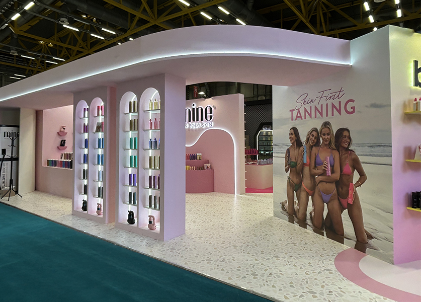 For Cosmoprof Italy, I designed a 152 sqm trade show stand to showcase four distinct brands—Mine, b.tan, b.fresh, and Lee Stafford—within a unified space. Each brand retained its unique identity while contributing to a cohesive overall experience. I created detailed visual renders using Adobe Dimension and Photoshop, and collaborated with an Italian stand-building team to bring the concept to life.